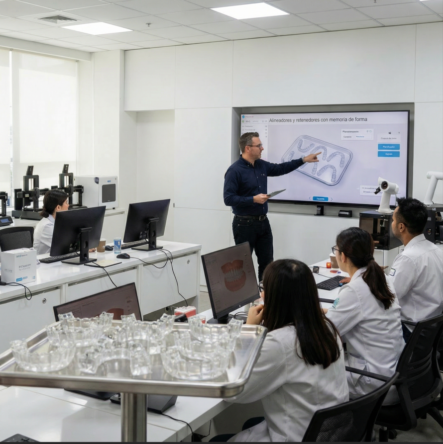 Nuestra formación está diseñada tanto para laboratorios de ortodoncia como para ortodoncistas que producen sus propios alineadores y retenedores, con un enfoque práctico, aplicable y alineado con la realidad del día a día.